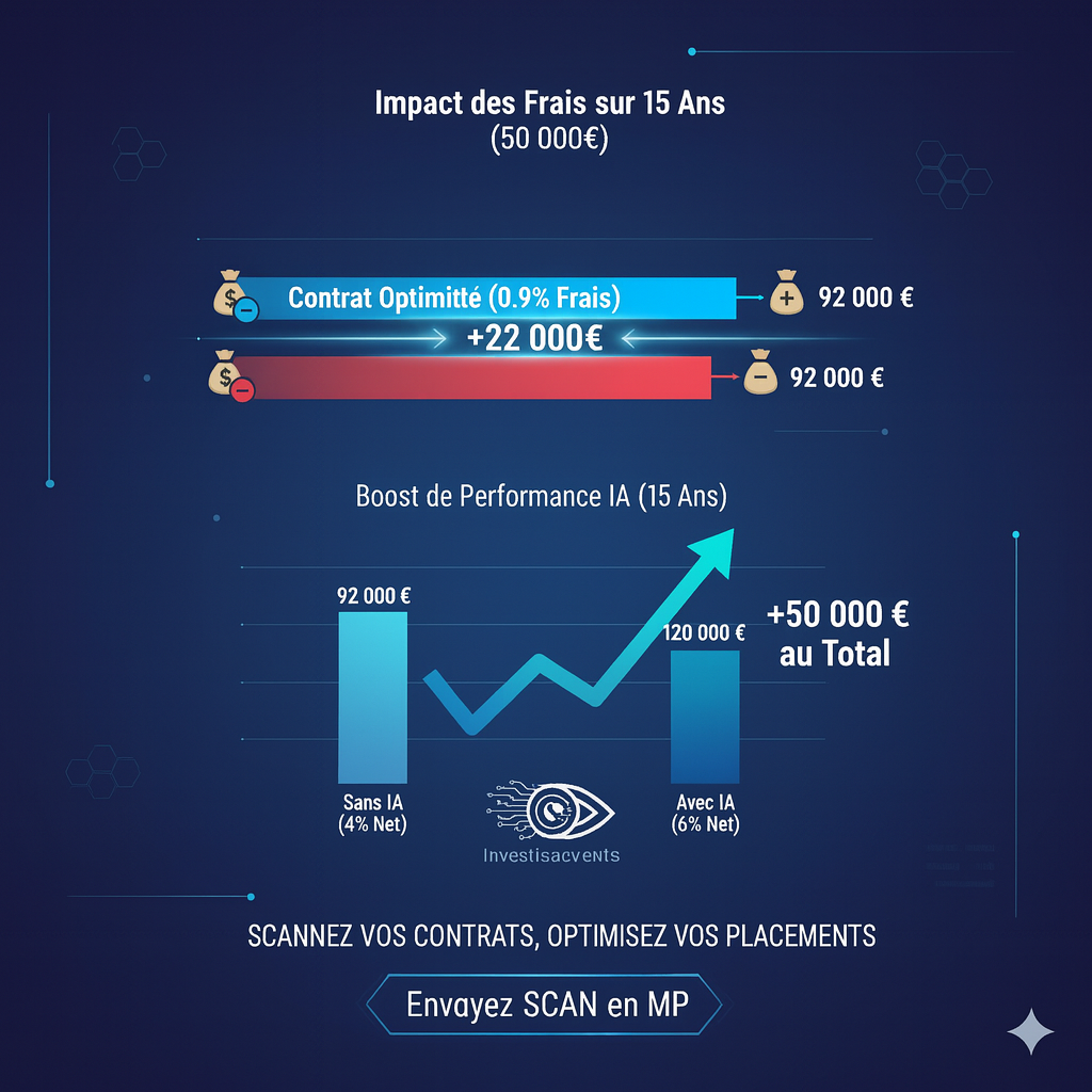 Finalement, l’ajout de 2 % de performance annuelle permet de faire passer votre capital de 92 000 € à 120 000 €. En résumé, l’analyse complète (frais + performance IA) génère 50 000 € de valeur ajoutée pour l’épargnant.